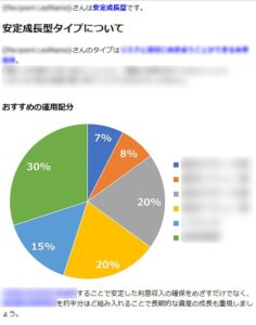 当診断テストは、一定の限られた質問をもとにユーザーに適していると考えられる資産配分(安定型・安定成長型・成長型)の診断を行うものです。